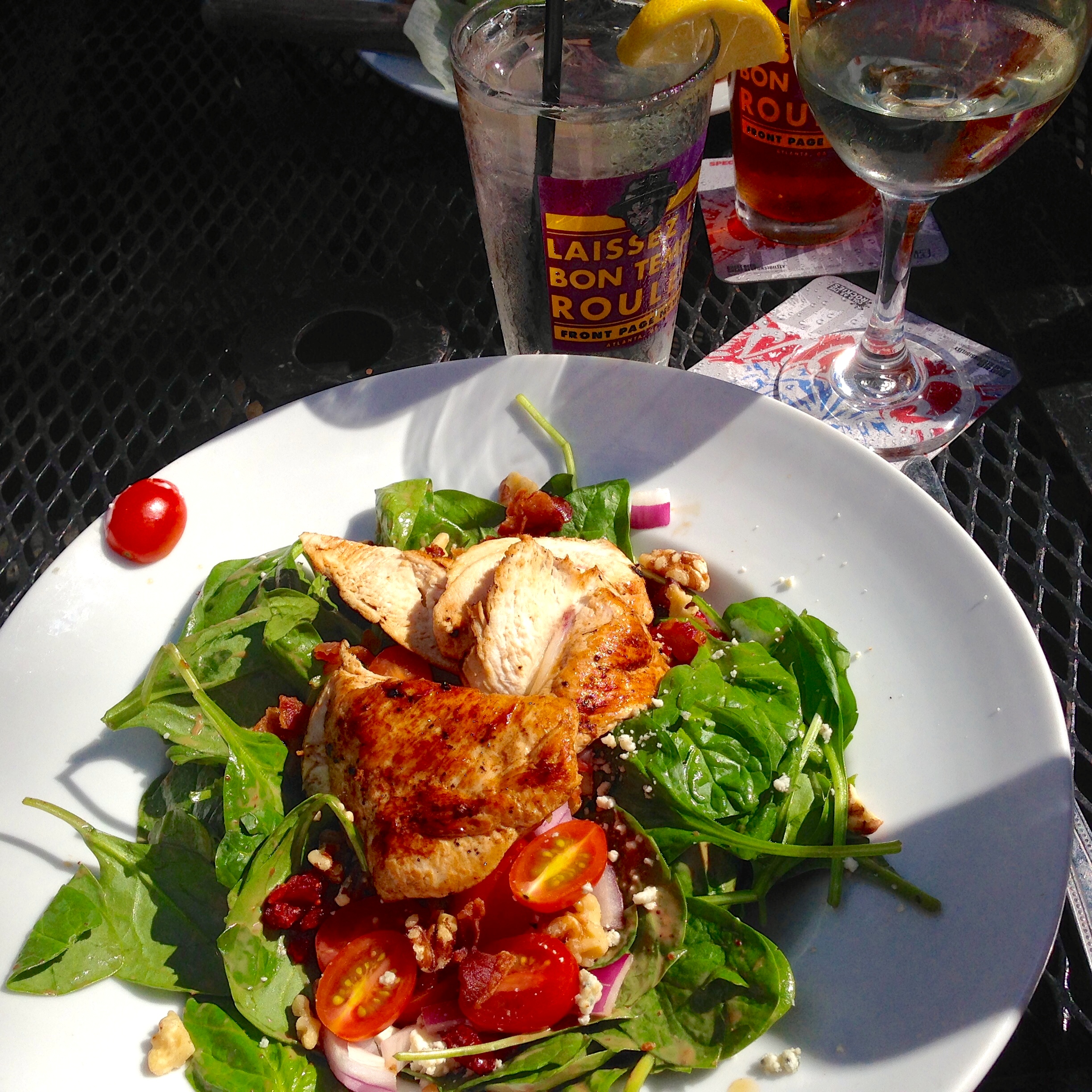 i honestly have only eaten here a handful of times. it’s more of a happy hour place for me and Spy, usually. but i was super-pleasantly-surprised by the gorgeous and generous spinach salad topped with grilled chicken that i got. i couldn’t even finish it. but i have to say, i was a little jealous of my neighbors on either side with an iceberg wedge (hello, blue cheese and bacon) with fried chicken tenders to my left and a fried shrimp po’ boy and tater tots to my right. nothing tastes as good as skinny feels. yeah, right. i am totally sure that shit does.