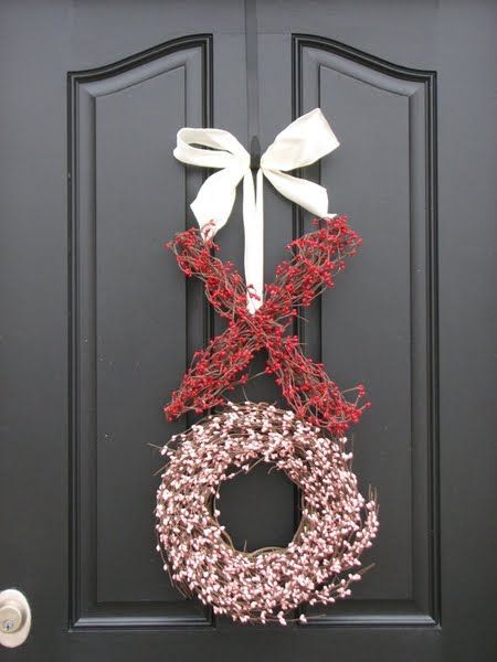 one of my very favorite things from my V-Day Pinterest board was this gorgeous XO wreath. truth be told, i should have just shelled out the $90 to buy it, but 1) i wasn’t thinking that far ahead and 2) what in the hell kind of fun would that have been for you guys?! so that’s the inspiration for this afternoon’s crafting shenannigans.