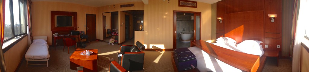 obnoxiously huge, right? the bed actually had a built-in table for in-bed dining.