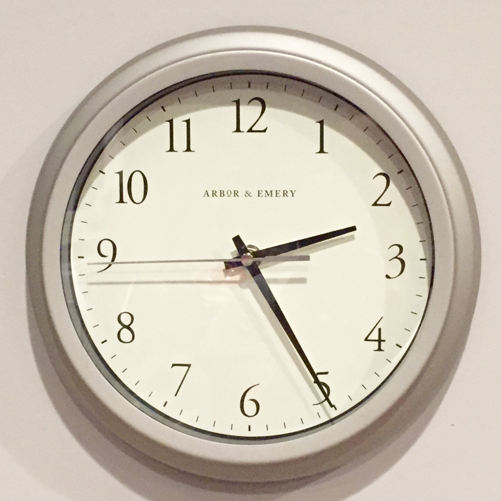 after some trial and error with sizing and color, i was able to match the off ecru clock face background and cover the logo without making it look too crazy. i would definitely recommend printing these on sticker paper, but of course i didn’t have any.